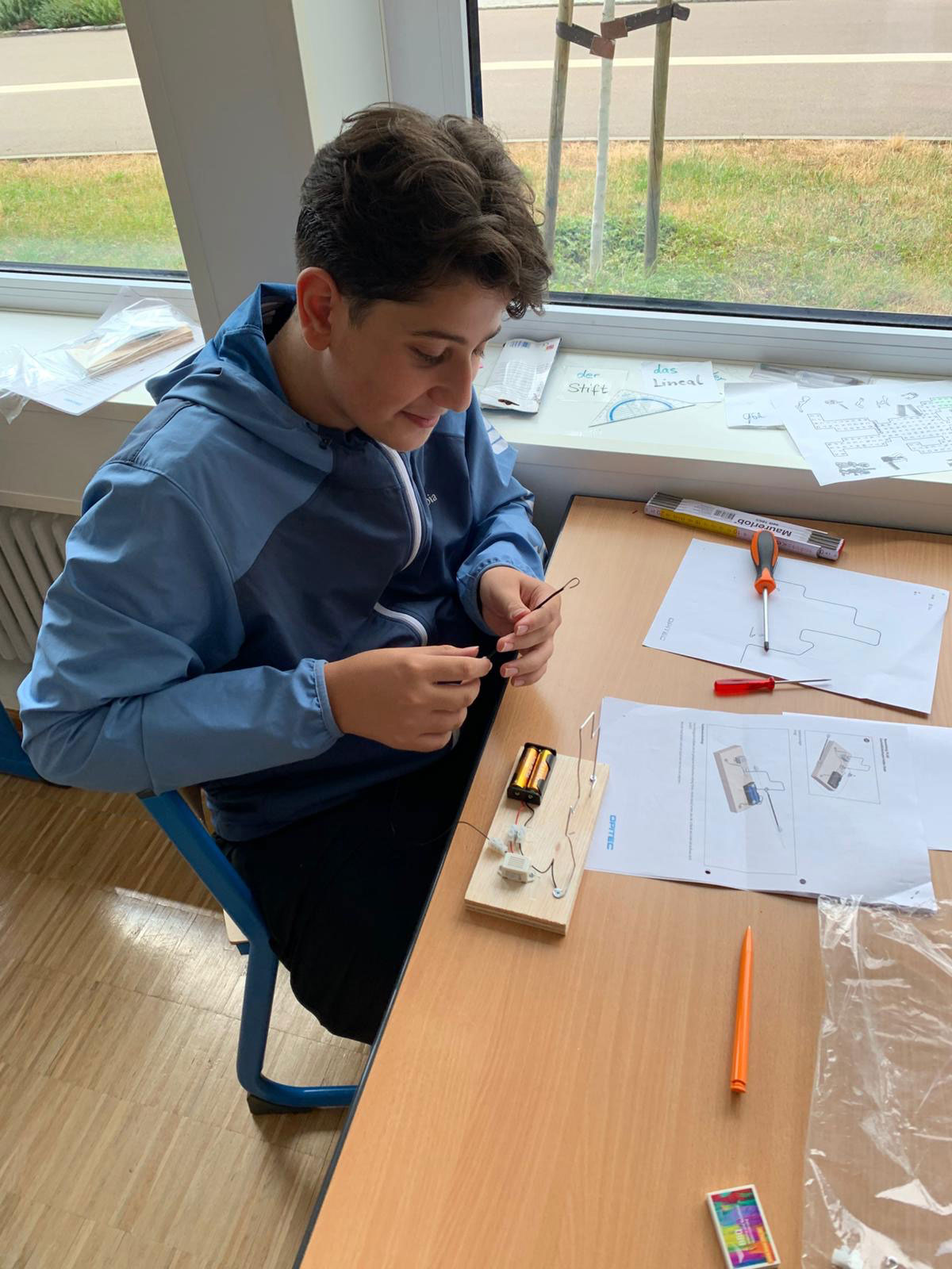 In der Theoriephase lernten die Jugendlichen Grundlagen zu Arbeitsabläufen, Fachbegriffen, Sicherheit am Arbeitsplatz und dem verantwortungsvollen Umgang mit Werkzeugen. Anschließend setzten sie das Gelernte in praxisnahe Projekte um.Beim Upcycling entstanden aus alten T-Shirts kreative Taschen – ganz ohne Nähen. Zudem bauten die Schüler einen „heißen Draht“, ein Geschicklichkeitsspiel aus Holz, Draht und einfachen Schaltkreisen. Dabei konnten sie handwerkliche Fähigkeiten entwickeln und wichtige Kompetenzen wie Geduld, Präzision und Teamarbeit stärken.